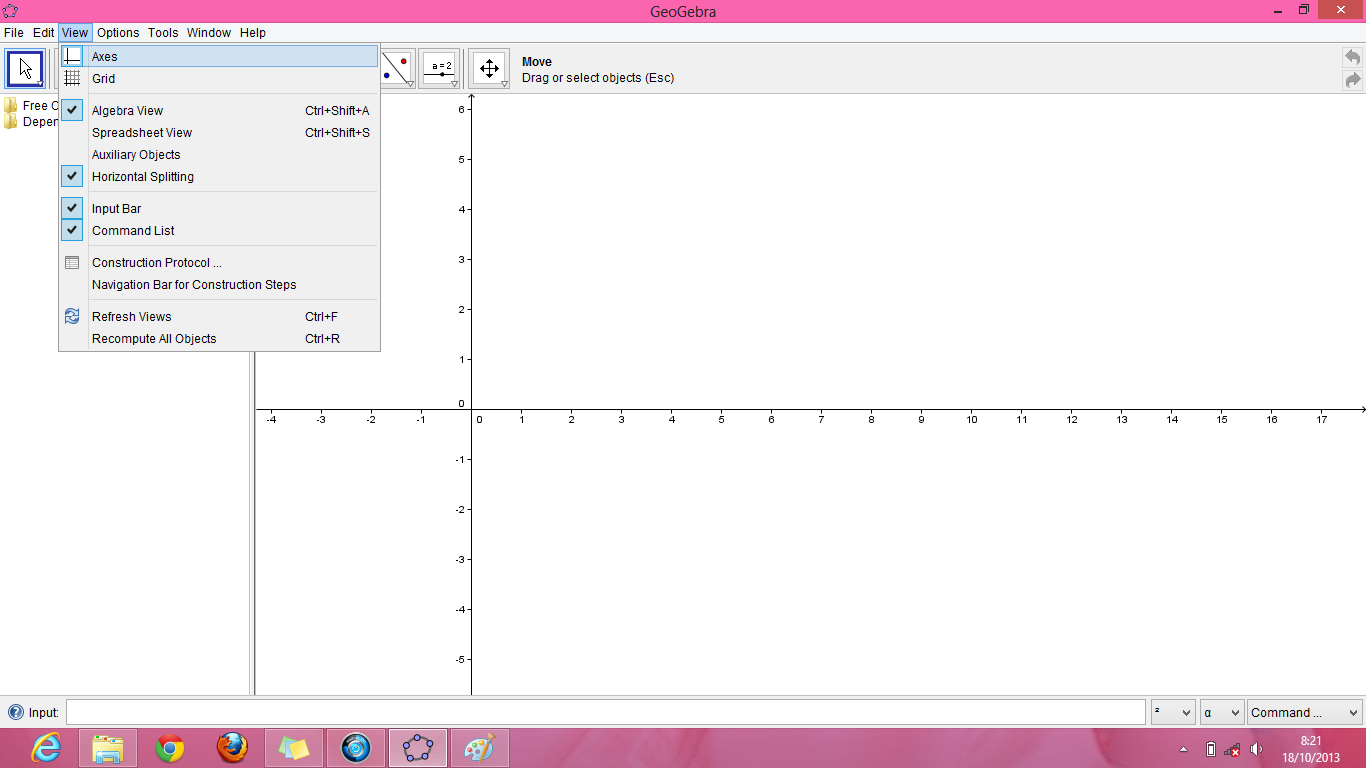 Ubah tampilan GeoGebra agar tidak terlalu pusing melihat lembar kerja, yaitu